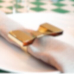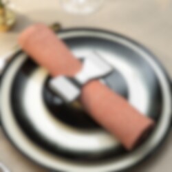 Bowie är en festlig servettring med formen av en fluga. Den kommer i två olika utföranden - mässing eller rostfritt stål. Bowie säljs i 2-pack.