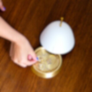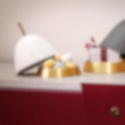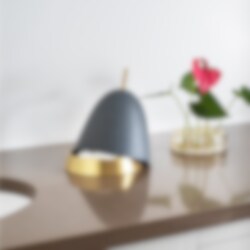 Gömma tillverkas i lackerad metall och har ett tillhörande fat i mässing. Det medföljer en dekorativ mässingsdetalj som levereras omonterat men enkelt skruvas på för hand av kunden.