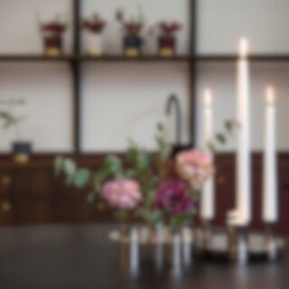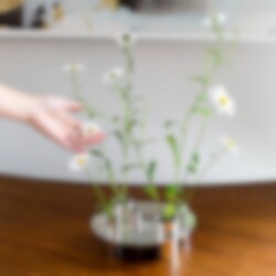 Awa är en vändbar vas och ljushållare. Blommorna, alternativt lågorna, reflekteras i kroppen och speglar en optisk illusion av djup.