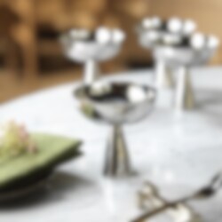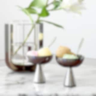 En av Eva Schildts största passioner är glass och är inspirationskällan till denna skål. Tanken förs till de traditionella glassbägarna som är vanliga i Italien. Här kommer en uppdaterad och mer lyxig variant. Naturligtvis kan denna fina skål även användas till andra serveringar av olika slag
