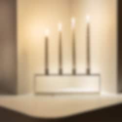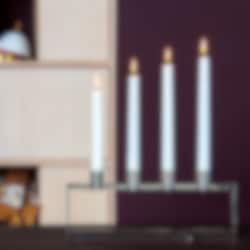 A.D. (Anno Domini) är en adventsljusstake i rostfritt stål. Utformningen är stram och avskalad och är en lek med både balans, geometri och symboler. Ett tvärstag i botten ger stöd för ljusramen och bildar på samma gång ovanifrån ett kors.