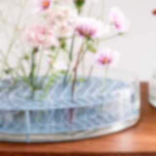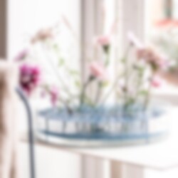 Ikoniska vasen Äng finns i en rad olika storlekar där Äng Mega är den största modellen och ger dig möjlighet att skapa storslagna blomsterarrangemang. Med sin enkla men finurliga konstruktion finns oändliga sätt att arrangera blommor i olika höjder och mängder. Glasen är munblåsta i Böhmen och metallinsatsen är tillverkad för hand i mässing och sedan lackerad i utvalda färger.
