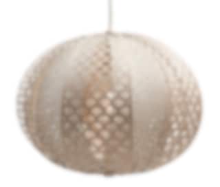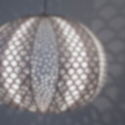 Lampan Knopp är uppbyggd av 12 stycken blad som fördelas i två lager som har olika mönster och färg. De utskurna mönstren skapar ljus- och skuggspel på väggar och golv. Lampan är tillverkad i laserskuren flygplansplywood, armatur i formpressad björk och med detaljer i mässing.