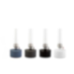 Oljelampan är tillverkad i stål och finns pulverlackerad i vitt, svart, grått, blått eller mörkröd.