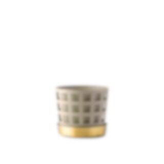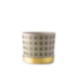 Det fina genombrutna mönstret till blomkrukorna skapar fint djup och ger karaktär utan att ta uppmärksamhet från växten. Varje kruka har tre delar; innerkruka, ytterkruka samt fat. Krukorna är tillverkade i rostfritt stål och sedan varsamt lackerade för en matt porslinsaktig yta. Fatet är tillverkat i borstad mässing.