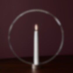 Gloria är en ljusstake och på samma gång en skulptur. När den är tänd verkar ljuset som ett inringat nav av energi och när den är släckt tar cirkeln över som en markör i rummet. Gloria tillverkas i massiv mässing samt med nickelpläterad yta, i två storlekar.