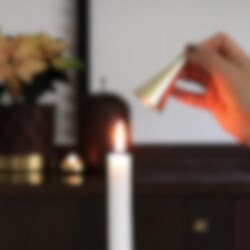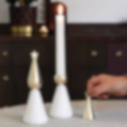 Stjärnstopp fungerar både som ljussläckare och som en dekorativ hatt när ljuset har brunnit ner. Med hatten vid sidan av ljuset påminner Stjärnstopp oss om att aldrig lämna ett brinnande ljus utan uppsikt. En fin och omtänksam gåva eller ett personligt tillskott till din egen jultradition.
