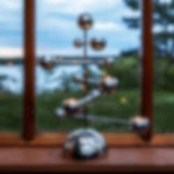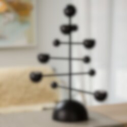 Inspirationen till ljusstaken Teluria kommer från de mekaniska instrument som visualiserar ljusets samspel mellan jorden, månen och solen. Teluria är en elegant ljusstake som finns i två olika ytbehandlingar: svart och nickel.