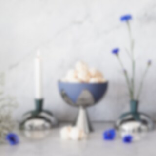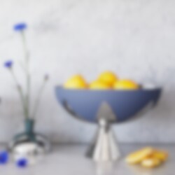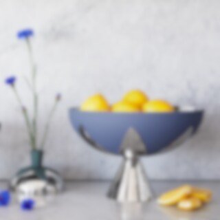 Med det fina lövet som utgångspunkt skapade Eva Schildt serien Blad. Förutom denna vas/ljusstake så består serien också av en tesil, en serveringsskål och te- och kaffeburkar i olika storlekar.